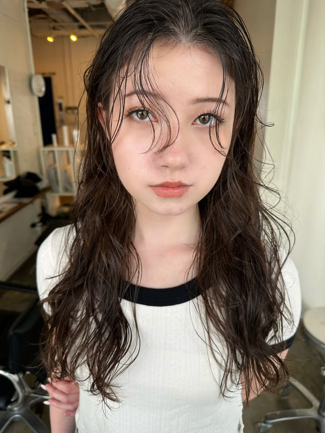 たっぷりとシャギーをいれたコケティッシュなロングスタイル